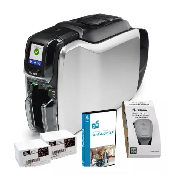 Impresora de credenciales Zebra ZC300 dual side + Ribbon 200 impresiones + 200 Tarjetas PVC + Software de diseño cardstudio 2.0 standard