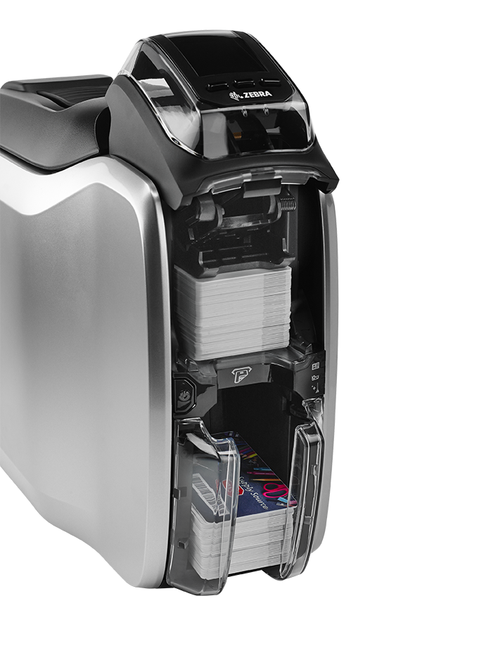 • Recipiente de salida con capacidad para 100 tarjetas (30 mil)